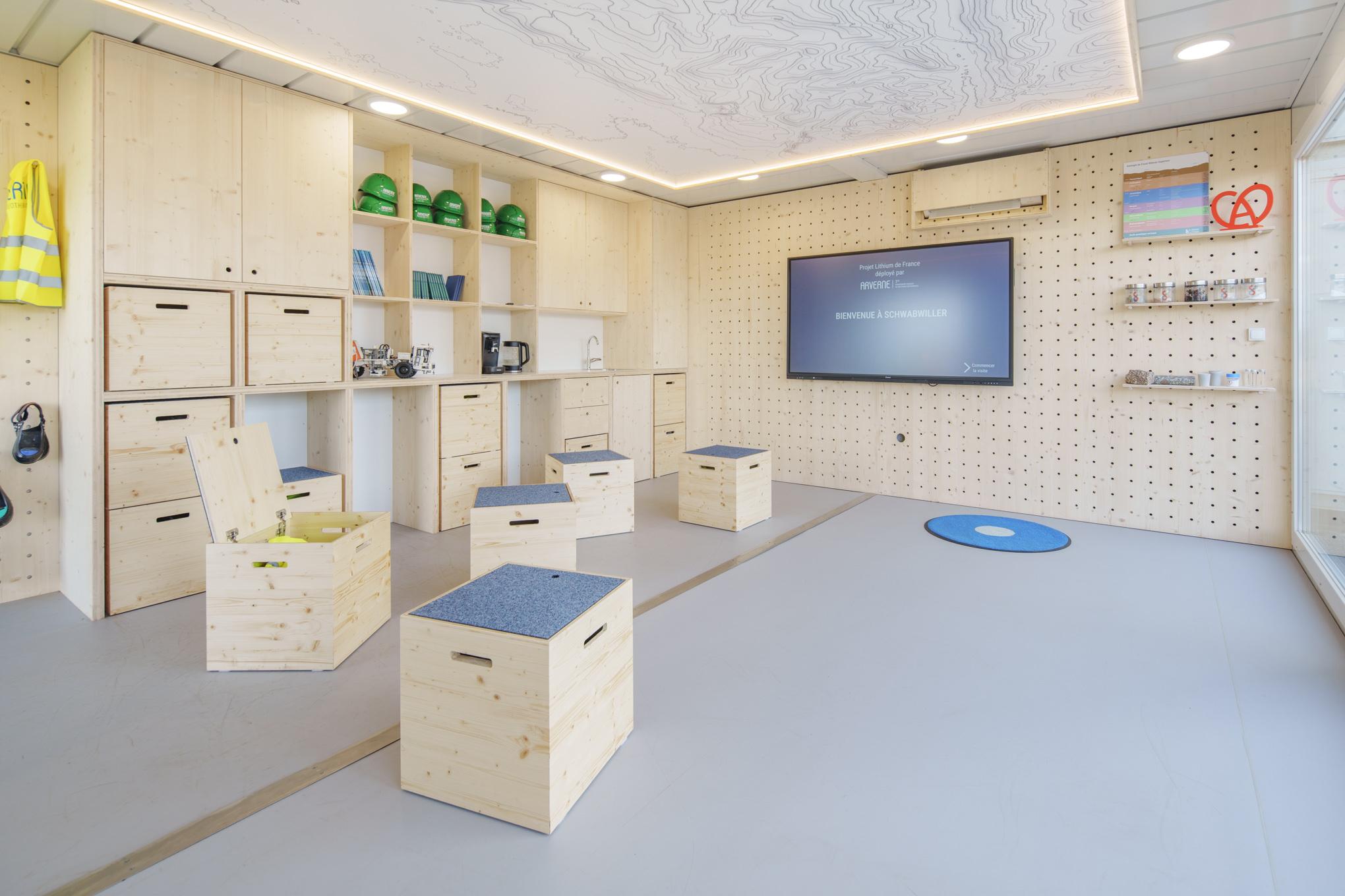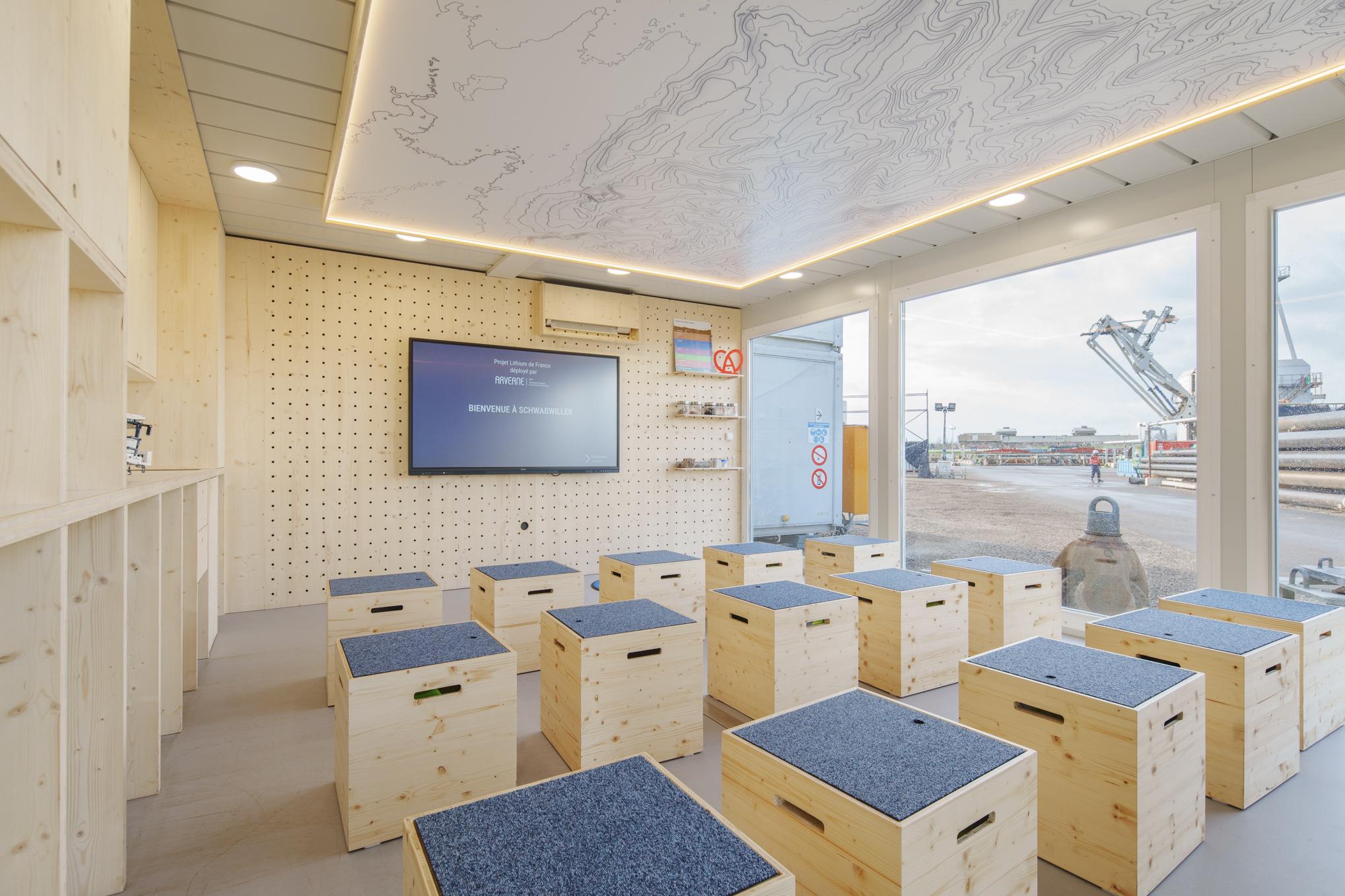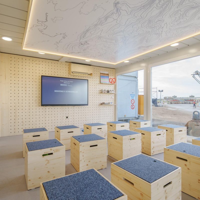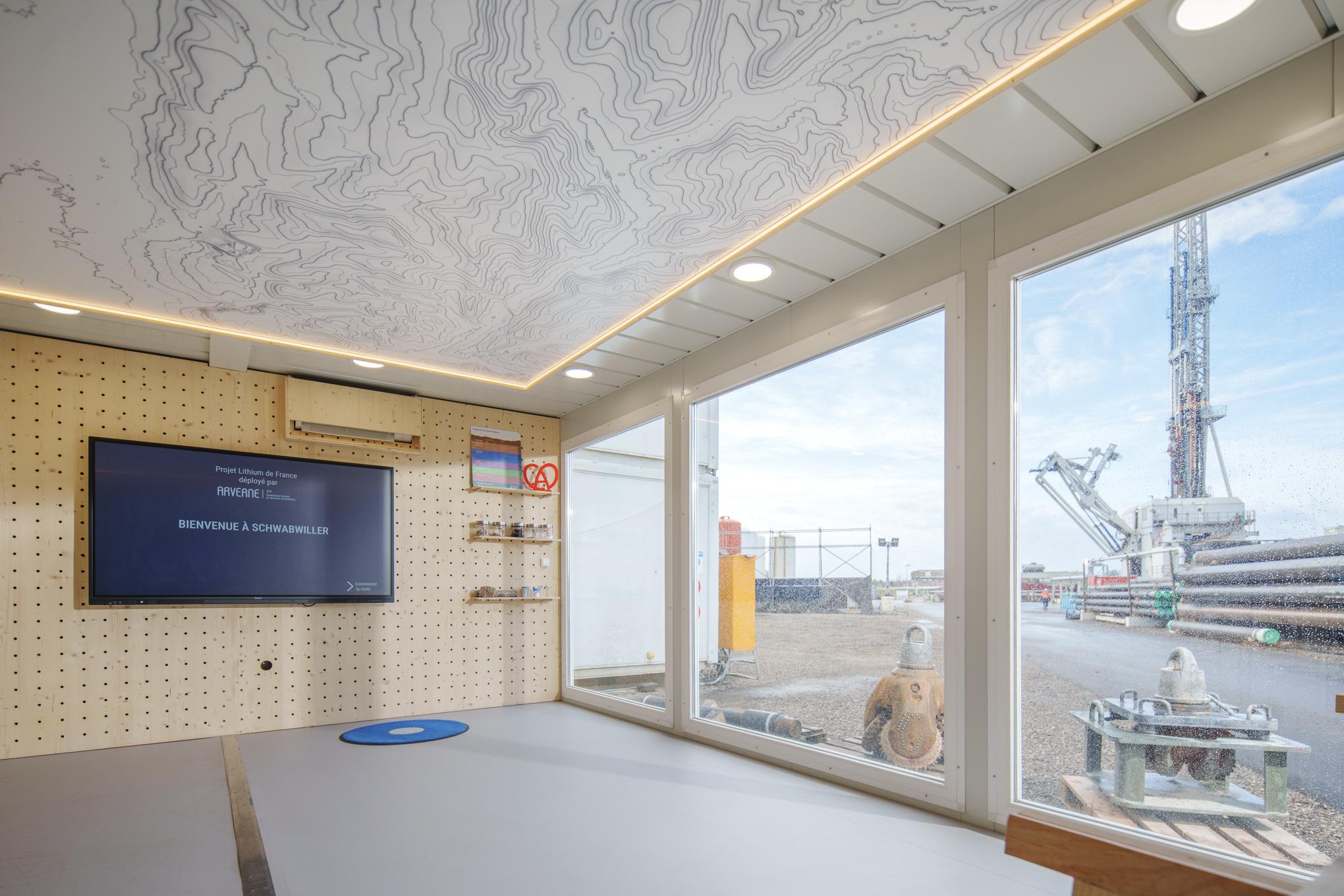 Co-conçu entre KS Aménagement et Flash Studio d’architecture, cet espace permet d'accueillir les visiteurs et présenter les activités du site : forage, extraction de lithium et production d’eau chaude géothermale.