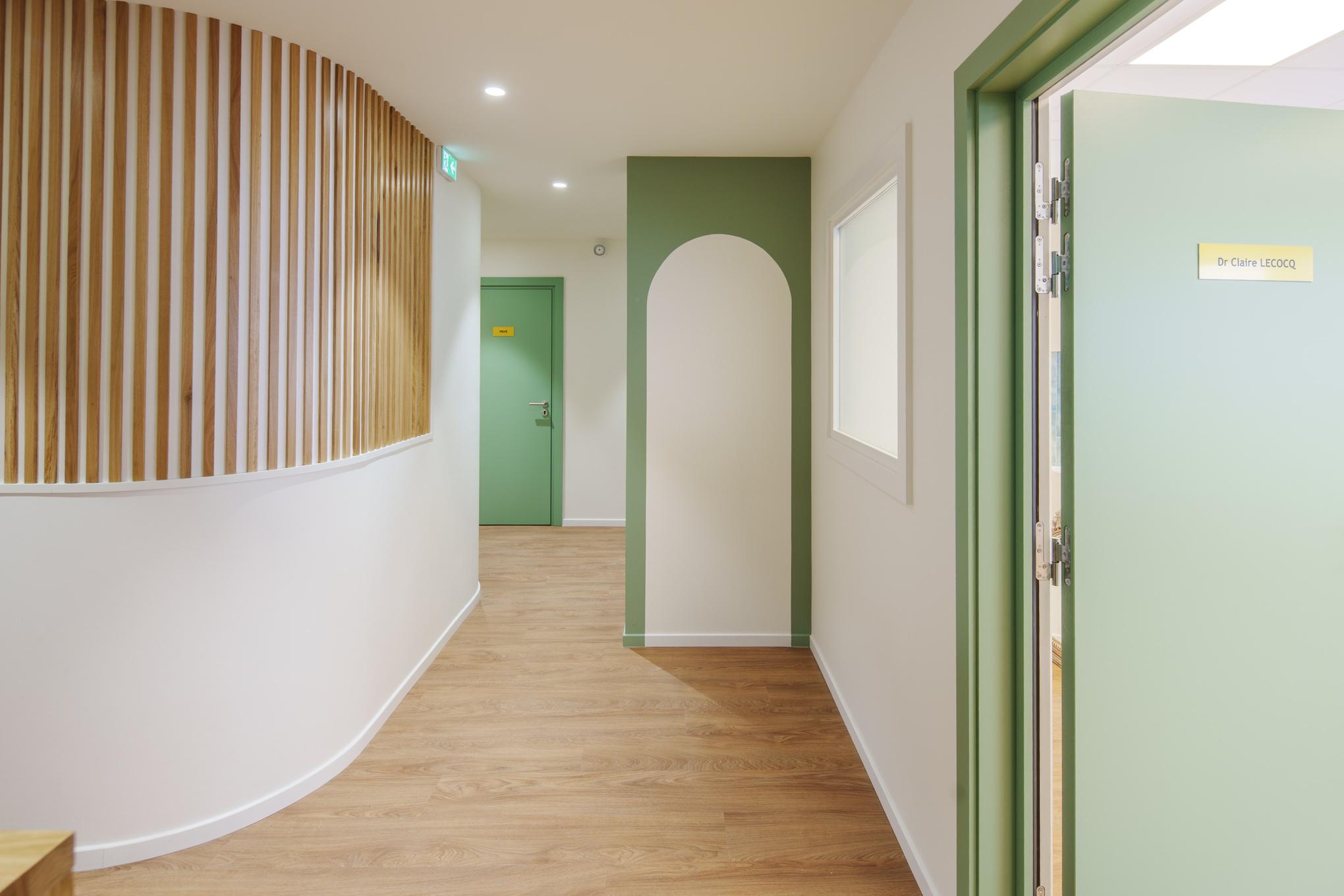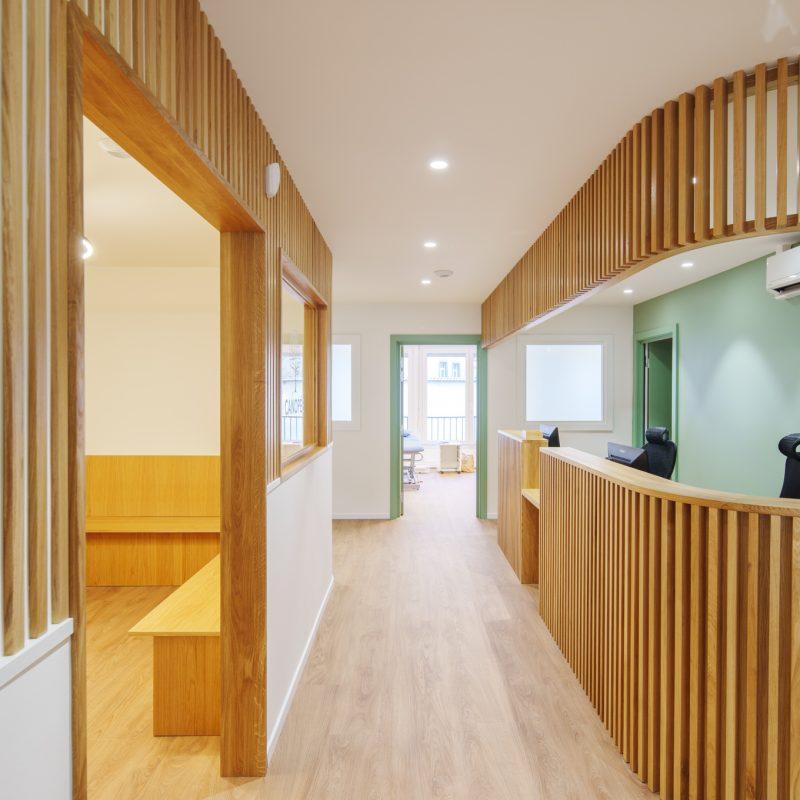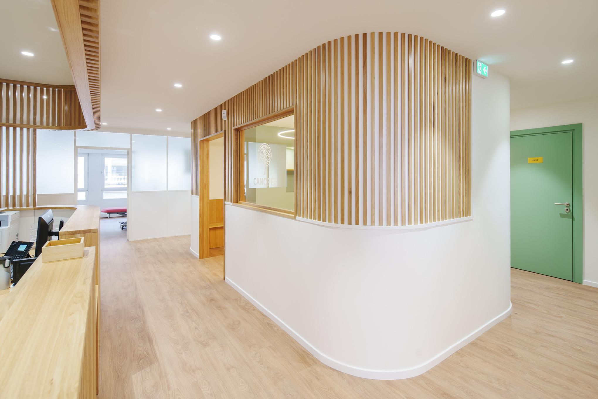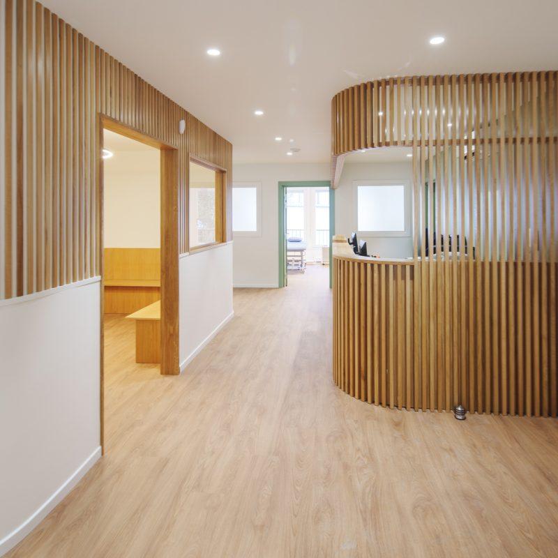 Au départ ce sont d’anciens bureaux qui ont été entièrement transformés pour en faire un cabinet médical moderne, fonctionnel et adapté aux usages des praticiens ainsi qu’au confort de la patientèle.