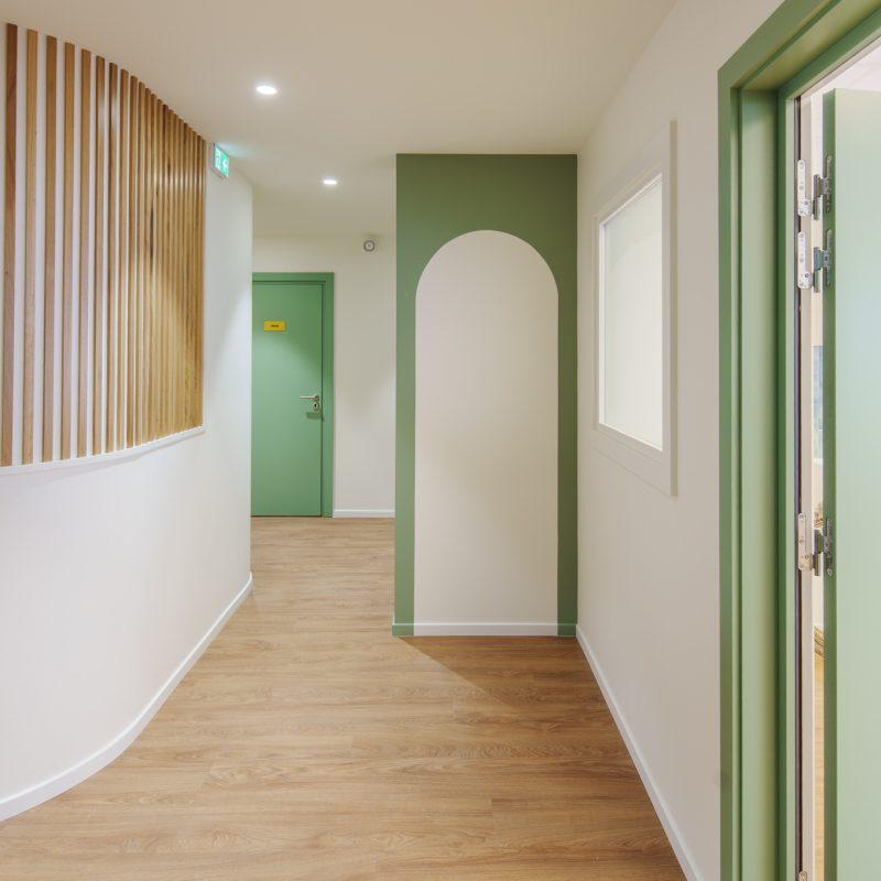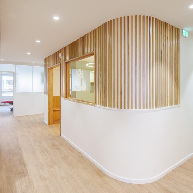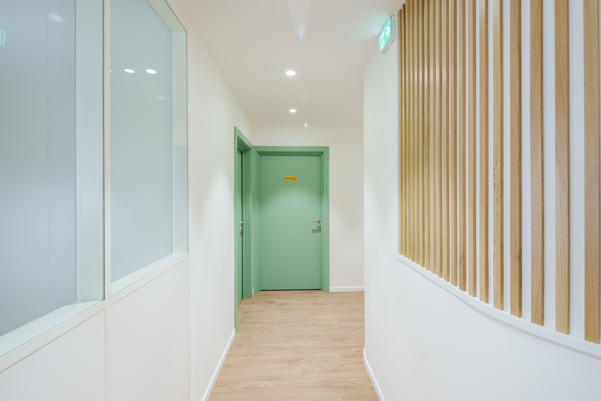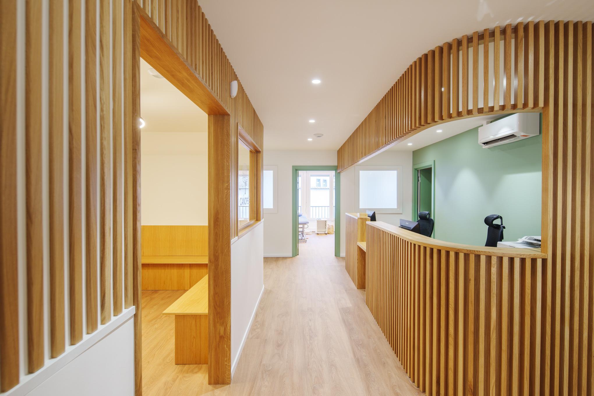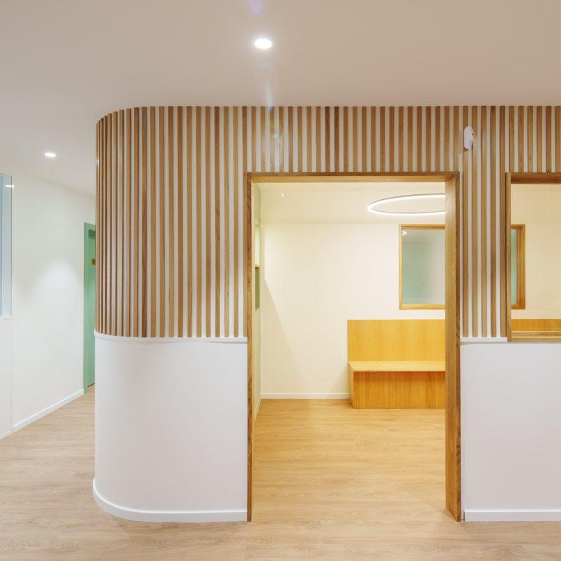 Au départ ce sont d’anciens bureaux qui ont été entièrement transformés pour en faire un cabinet médical moderne, fonctionnel et adapté aux usages des praticiens ainsi qu’au confort de la patientèle.