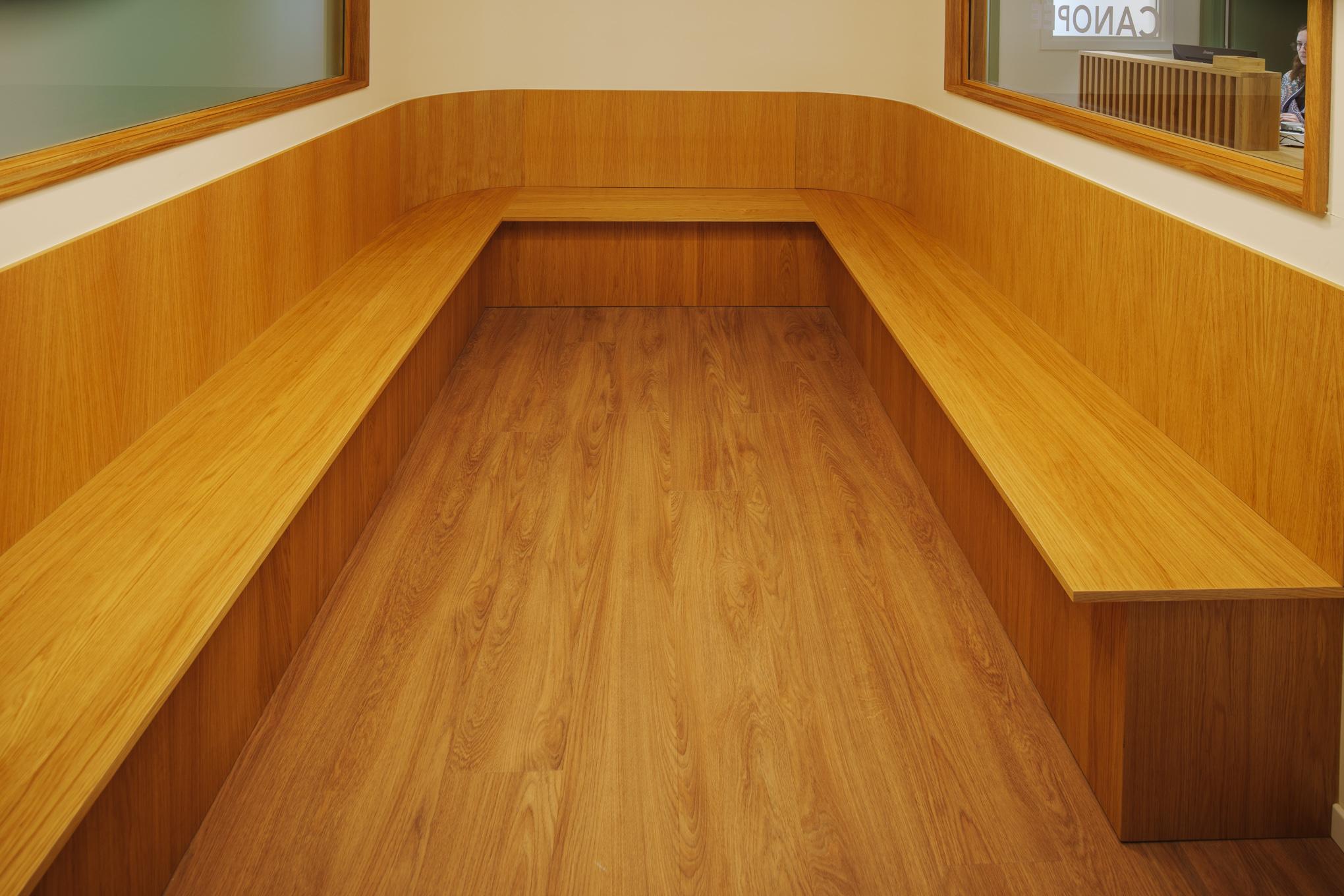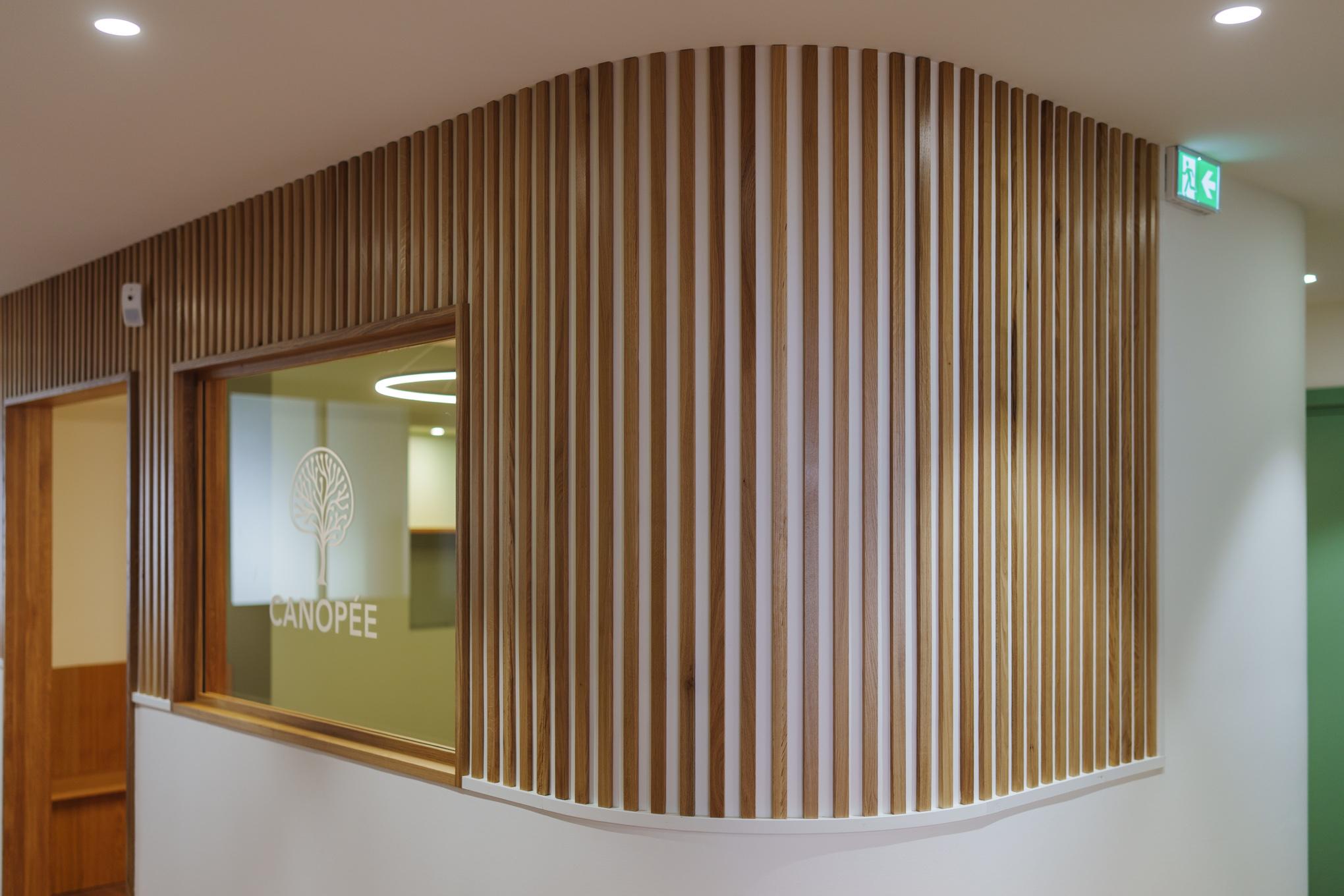 Ce cabinet de 200 m² comprend un espace d’accueil, une salle d’attente et trois bureaux de consultation. Le bois y occupe une place centrale, apportant une atmosphère chaleureuse, sobre et élégante. L’ensemble de la menuiserie a été conçue sur mesure dans notre atelier de Bischheim, pour une parfaite adaptation aux volumes, aux contraintes techniques et aux habitudes de travail des médecins.
